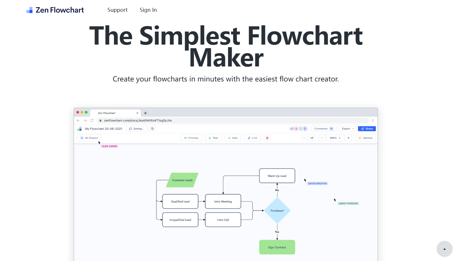 Zen Flowchart 是一款以“简单到极致”为理念打造的在线图表工具,支持快速创建鱼骨图、流程图、组织架构图等。它的AI辅助功能能让你通过简单的语句描述,即可生成结构化的鱼骨图,特别适合追求“少即是多”的用户。