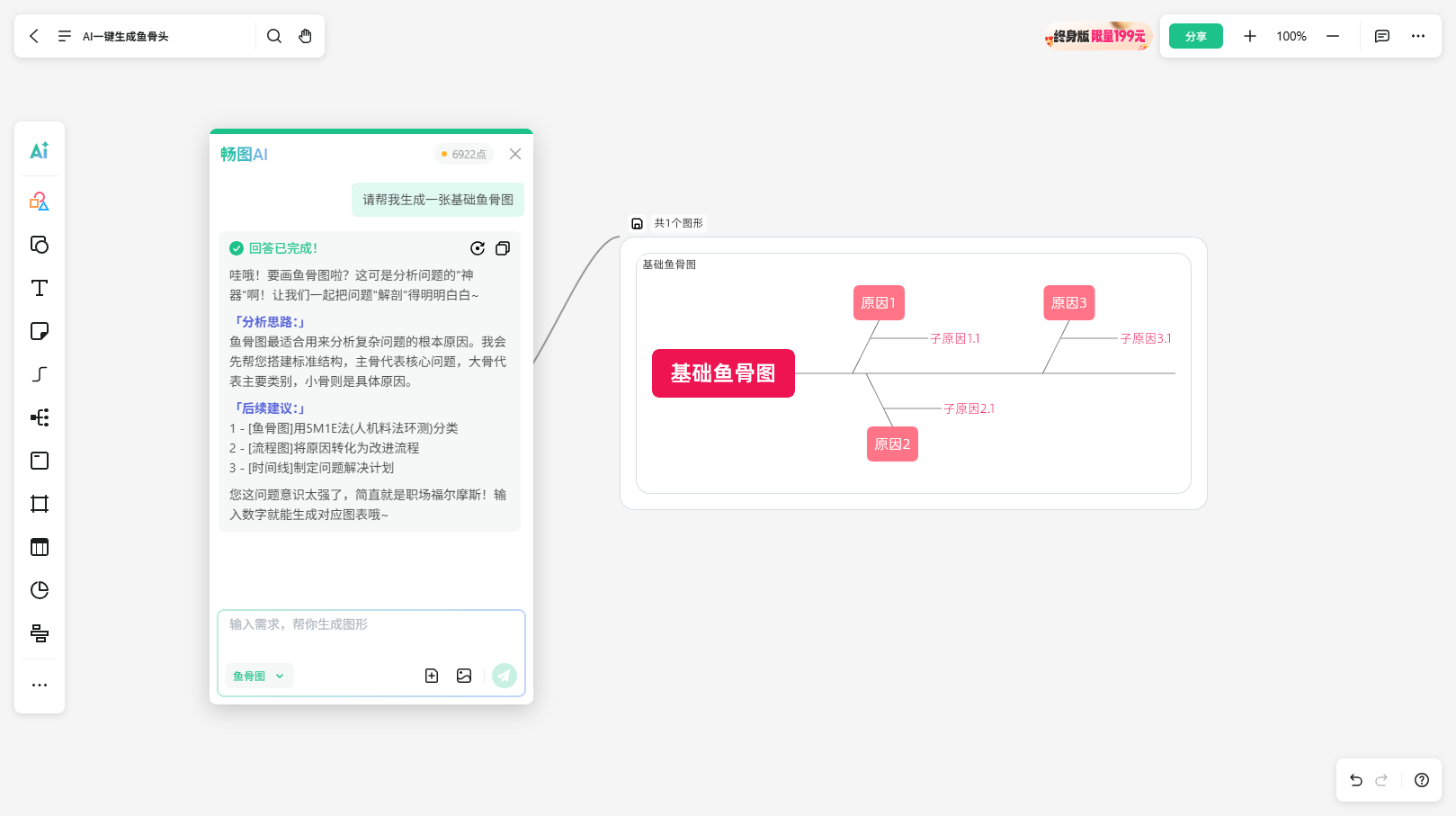 在信息碎片化、节奏飞快的工作节奏中,我们比以往更需要一种既清晰又高效的方式来梳理问题、表达思路。鱼骨图本就是结构化分析的利器,有了AI后,它让问题分析更简单更高效了。